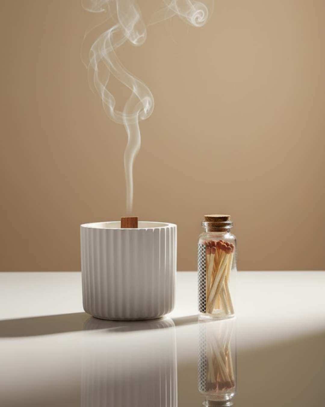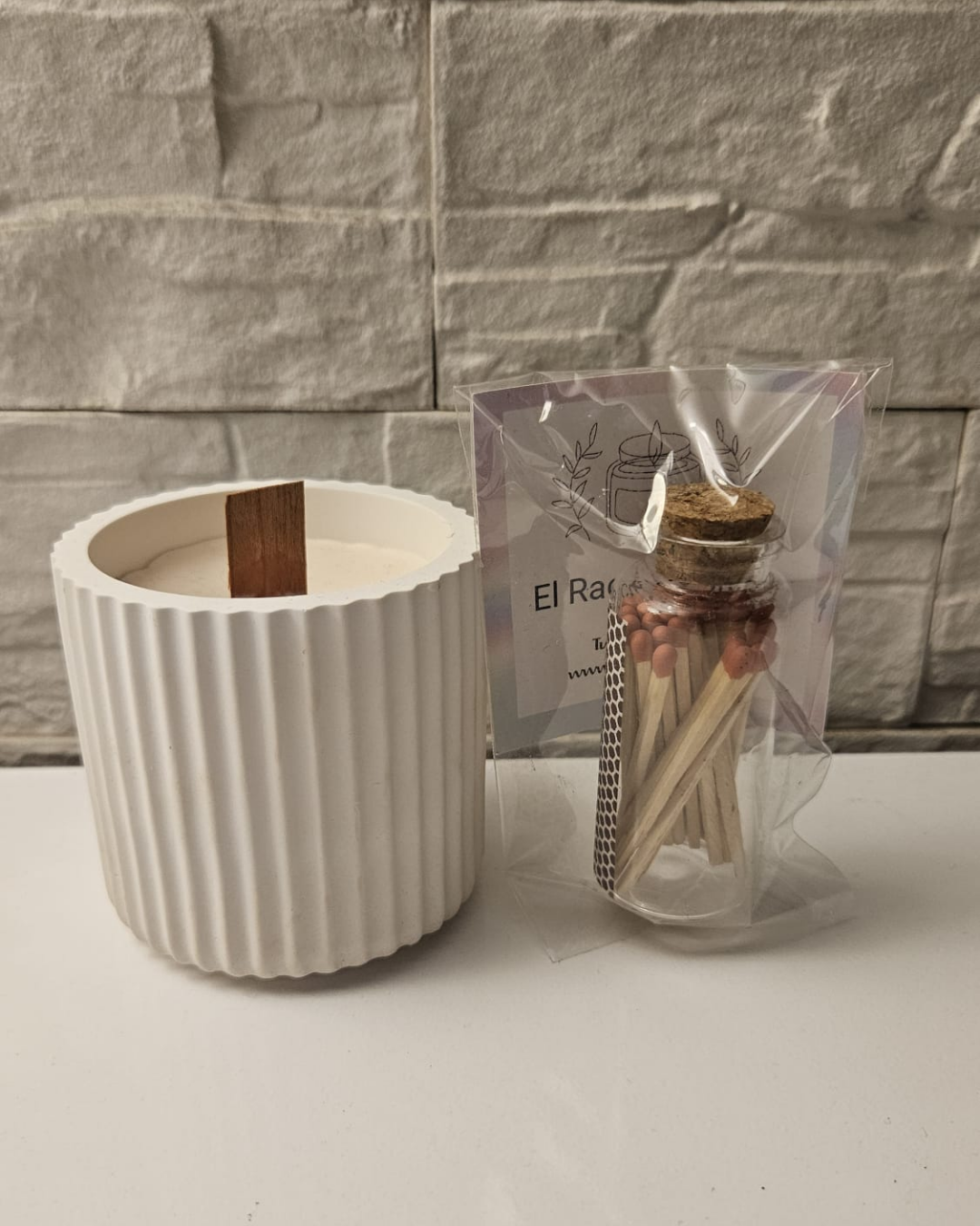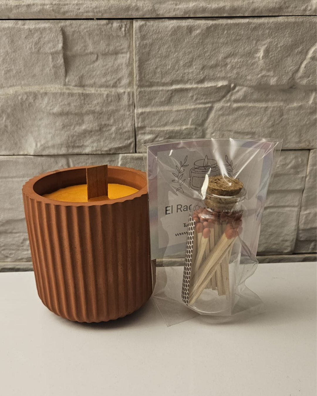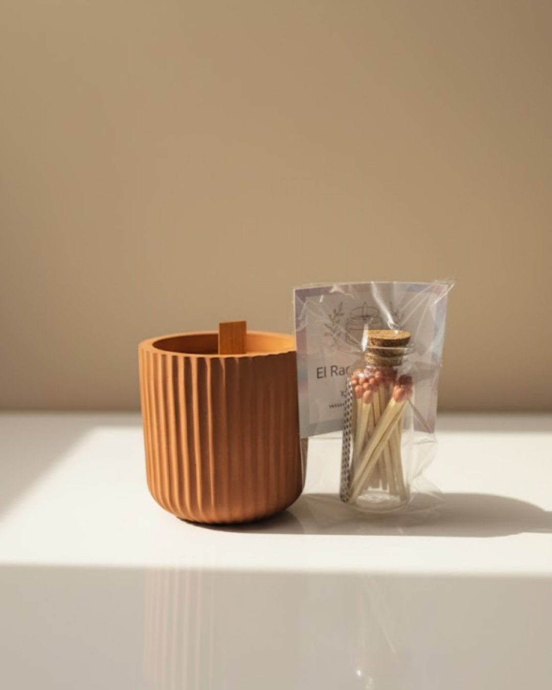 Nuestra Vela Artesanal Navideña es la pieza central perfecta para estas fiestas. Creada con cera de soja natural y mecha de madera, su diseño estriado y minimalista es un auténtico objeto de decoración. 8 cm alto x 7 cm ancho.